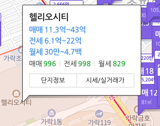 동일 매물 묶기를 선택하고 다시 확인하면, 위의 매물 숫자가 거의 반으로 줄어들은 것으로 표시된다.